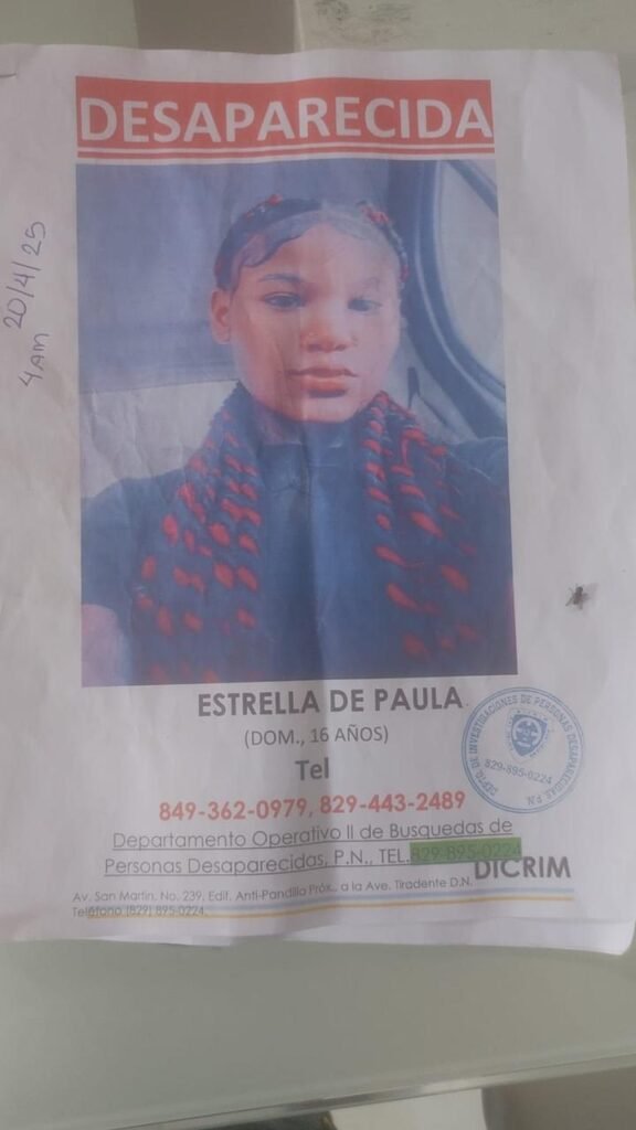 Estrella de Paula, la adolescente dominicana de 16 años que había sido reportada como desaparecida desde la noche del Domingo de Resurrección, fue localizada por las autoridades tras confirmarse que había sido víctima de un secuestro. Actualmente se encuentra hospitalizada recibiendo atención médica.