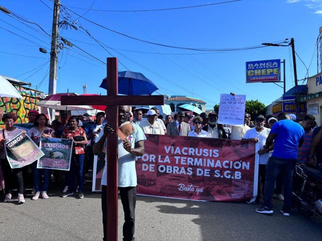 Durante un viacrucis, los sabanaboyenses exigieron al ministro de Obras Públicas y Comunicaciones (MOPC), Deligne Ascención, cumplir con las promesas y la palabras empeñadas sobre la construcción de aceras y contenes, así como la pavimentación de las principales calles de los sectores que conforman la localidad.
